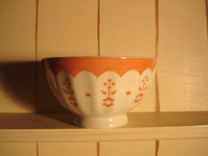 アンティーク風の可愛いカフェオーレボールです。素朴なデザインになっています。カフェオーレやスープ、サラダなどに。日本製になってます。レンジ、オーブンもOKです。大きさは縦5cm、横9cm位です。