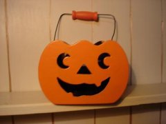 ハロウィンの木製のバスケットです。顔がキュートな顔をしています。