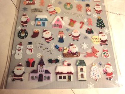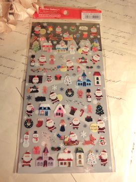 キュートな銀箔風シールです。クリスマスやサンタをモチーフにした可愛いデザインになっています。ラッピングやワンポイントにピッタリです。大きさは9cm×17.5cm位です。