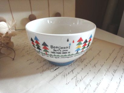 可愛い柄の陶器の茶碗です。イラストがとってもキュートです。小さめのお茶碗でカフェオーレボウルにもぴったりのデザインです。大きさは横10cm、縦6cm位です。