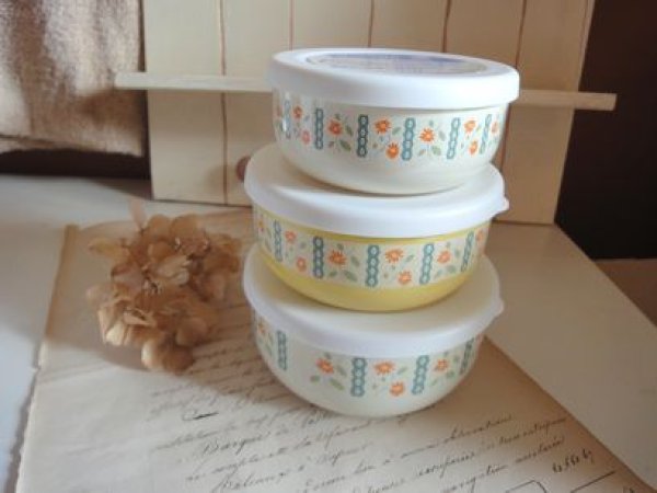 春らしい花柄がが可愛い保存容器のセットです。3個セットです。ABS樹脂で蓋を外して電子レンジもOKです。ふた付きで食品の保存にも便利です。大きさはS横9.5cm、縦4cm、M横10cm、縦5cm、L横12cm、縦6cm位です。