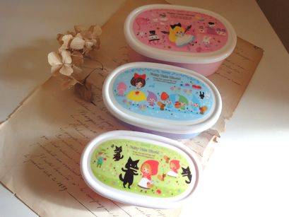 キュートなデザインのランチボックスのセットです。イラストがとてもかわいいです。3サイズのセットになってます。電子レンジはフタをはずしてお使い下さい。大きさはLが横14cm、縦5.1cm、幅9cm、Mが横12.9cm、縦4.4cm、幅8cm、Sが横11.9cm、縦3.7cm、幅6.9cmです。