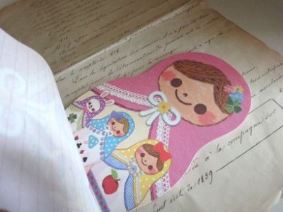 マトリョーシカの形が可愛いイラストが入ったメモです。イラストがとっても素敵です。4柄が30枚ずつで120枚つきです。中にも可愛いイラストが入ってます。大きさは横10.1cm、縦14.5cmです。