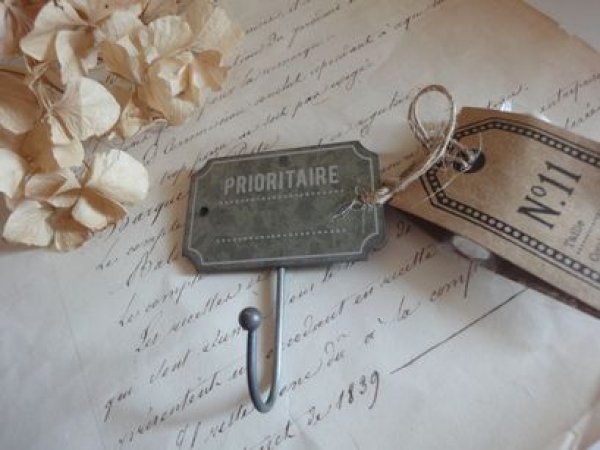 アンティーク風のデザインのおしゃれなマグネットフックです。スチール製で裏にマグネットがついています。渋いカラーでフレンチ風のインテリアにもぴったりです。チョーク付きでメッセージも書けます。大きさは横5.7cm、縦7cm位です。