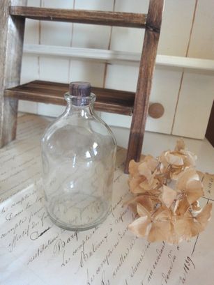 アンティーク風のガラスびんです。ふたは木製です。シンプルなデザインでフレンチ風のインテリアにもぴったりです。大きさは横5cm、縦10cm位です。
