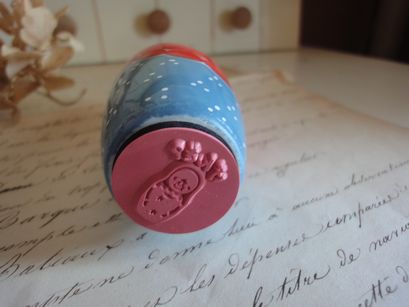 陶器のドールが付いたかわいいスタンプです。インテリアとして飾ってもとっても素敵です。大きさは横4cm、縦8.5cm位です。