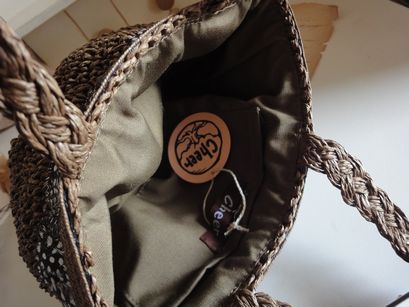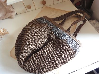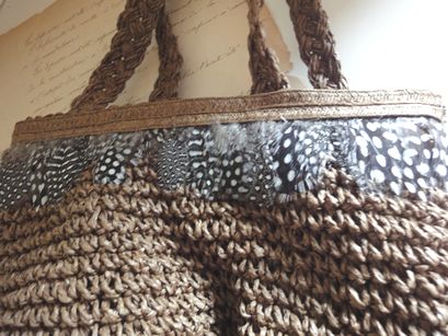 フォークロア風デザインの羽付きバッグです。涼しげなペーパーラフィアの素材に羽飾りのデザインになってます。大きさは横16cm、縦27cm位です。