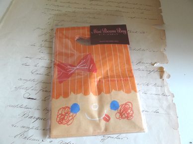 キュートなデザインの持ち手付きのペーパーバッグのセットです。小さめサイズでラッピングやおすそわけなど使い道も色々です。5枚入りです。大きさは横13mm、縦9cm、まち5.5cm位です。
