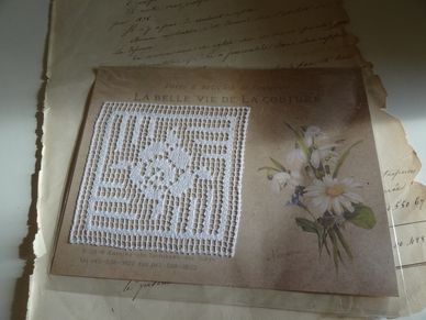 素敵なデザインのカードにモチーフレースが付いていますです。バッグや洋服などにつけるとフレンチ風のデザインになります。大きさはレースが横9.5cm、縦9.5cm位です。