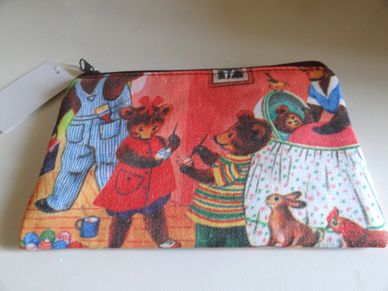 可愛い物語のようなデザインのコスメポーチです。ナイロンコートのコットン素材でとても丈夫です♪レトロな絵柄が素敵です。フラットでバッグの中でもかさばりません。大きさは横19.5cm、縦12cm位です。