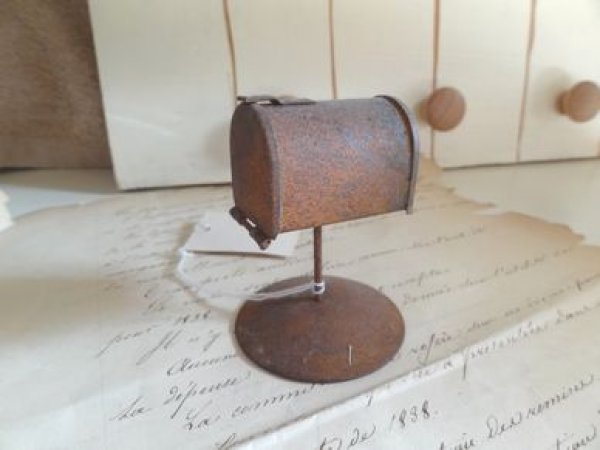 アンティーク風の錆びたデザインのミニメイルボックスです。インテリアやガーデンに。大きさは横5cm、縦6.5cmです。