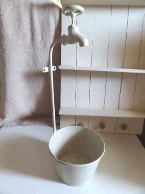 アイアン素材のじゃぐちのオーナメントがついたポットです。アンティーク風のデザインが素敵です。小物を入れたりグリーンを入れたり。ガーデンやインテリアに。大きさはポットが横16cm、縦10cm、全体の高さが44cm位です。