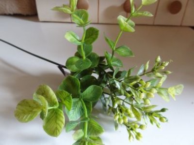 色合いが素敵なユーカリのアートフラワーピックです。小さな小瓶やかごなどに飾るととっても素敵です。本物みたいな色合いです。横16cm、縦16cm位です。
