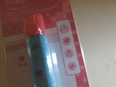 シンプルなモチーフのスタンプセットです。可愛いデザインが4個セットになっています。ポイントタイプの小さなスタンプがスケジュールなどに便利です。インクなしで押せる浸透印タイプになっています。横1.4cm、縦8cm位です。