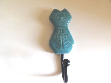 レトロなデザインが可愛い陶器製のマグネットフックです。北欧風のデザインが素敵です。裏側はマグネットと吊り金具の両方が使えるようになっています。サイズは縦9.8cm、横3.5cm位です。