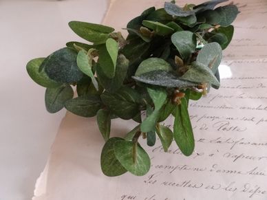 デザインが素敵なハーブの造花です。小さな瓶やかごなどに飾ったり壁や窓辺にぶら下げてもとっても素敵です。本物みたいな色合いです。長さ28cm位です。