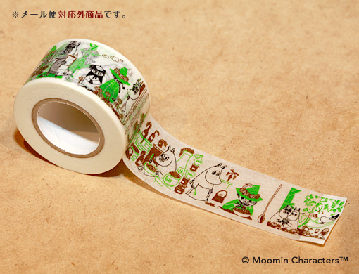北欧風のムーミンの柄が素敵なマスキングテープです。ラッピングやコラージュ、文具のワンポイントに。素材は和紙です。大きさは幅3cm、長さ15m巻き位です。