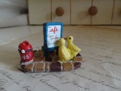 レジン製のオーナメントです。イーゼルを見ている小さな可愛いダックのデザインです。お庭の飾りやインテリアにも。大きさは横6cm、縦3.7cm、厚み3.5cm位です。