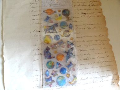 メルヘンなイラストが素敵なぷっくりしたドロップタイプのシールです。ノートや手帳、携帯などにも。中にキラキラした飾りがちりばめられているようなデザインがとっても可愛いです。大きさは台紙が横7.5cm、縦19.8cm位です。