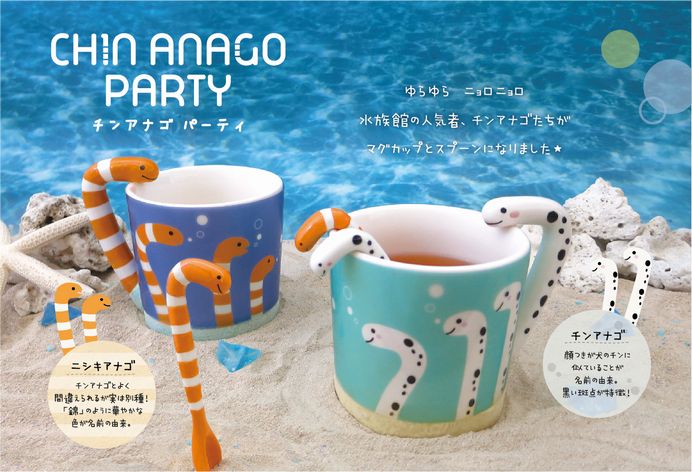 可愛いデザインの陶器のマグカップです。チンアナゴが持ち手になっていてキュートです。インテリアにも。大きさは横9.3cm、縦10.3cm位です。