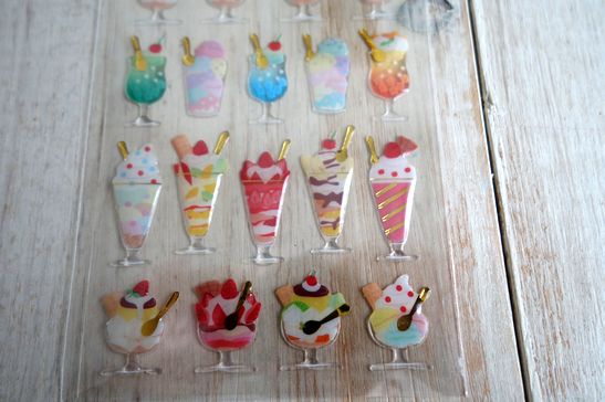 ぷっくりしたドロップタイプの可愛いシールです。ノートや手帳、コラージュやシール帳などにも。コーティングされたようなデザインがとっても可愛いです。大きさは台紙が横7cm、縦16.5cm位です。