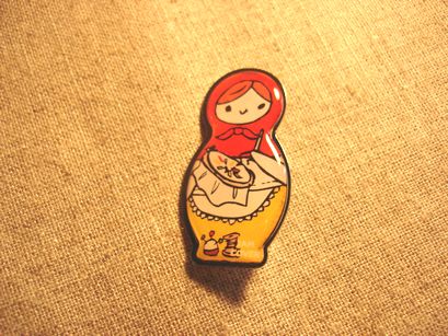 可愛いマトリョーシカのブローチです。色合いやデザインもとっても可愛いです。大きさは横2.2cm、縦4cm位です。