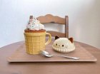 可愛いアイスのようなデザインのマグカップです。陶器製になってます。顔の部分が蓋になります。プレゼントにもぴったりです。電子レンジは不可です。大きさは幅9.6cm、高さ13.2cm位です。
