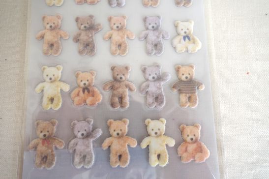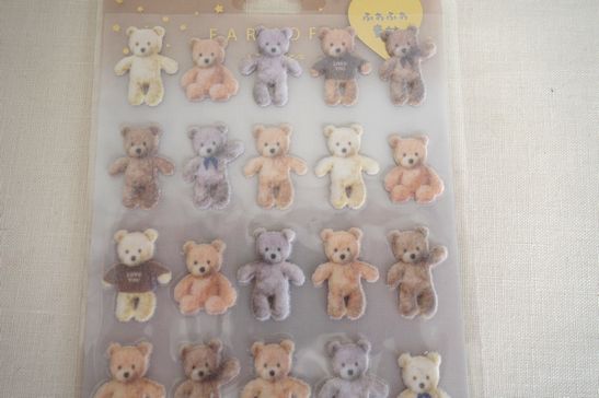 ぬいぐるみのようなふわふわもふもふしたフロッキーなキュートなシールです。ノートや手帳など可愛く見やすく貼れます。大きさは台紙が横9cm、縦17.5cm位です。