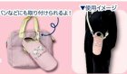 紐が取り外し出来るのでバッグなどに取り付けられます。着用イメージになります。