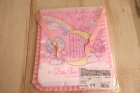ファンシーなリトルツインスターズの巾着です。フリルがついた可愛いデザインです。小物の仕分けやギフトなどにも。素材はポリエステルです。大きさはフリル込みで横20cm、縦21.5cm位です。