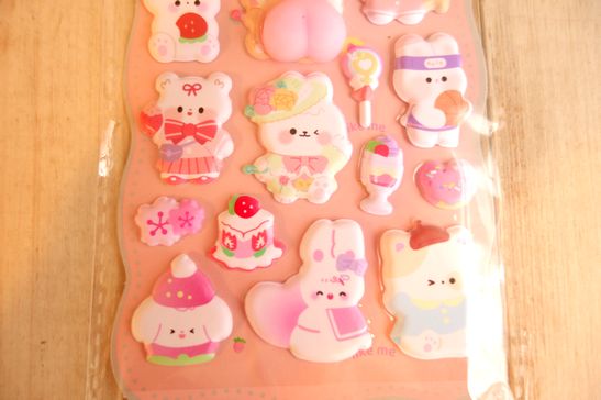可愛いぷっくりタイプのシールです。洋服メーカーさより入荷分ですのでmade in Chinaになっております。ノートや手帳、ラッピングやコラージュ、シール帳などに可愛く貼れます。大きさは台紙が横10.5cm、縦23.5cm位です。