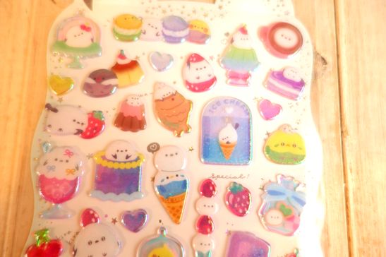 可愛いきらきらぷっくりタイプのシールです。洋服メーカーさより入荷分ですのでmade in Chinaになっております。ノートや手帳、ラッピングやコラージュ、シール帳などに可愛く貼れます。大きさは台紙が横9cm、縦19cm位です。