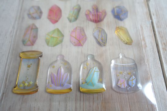 ぷっくりしたドロップタイプの可愛いシールです。ノートや手帳、コラージュやシール帳などにも。コーティングされたようなデザインがとっても可愛いです。大きさは台紙が横7cm、縦16.5cm位です。