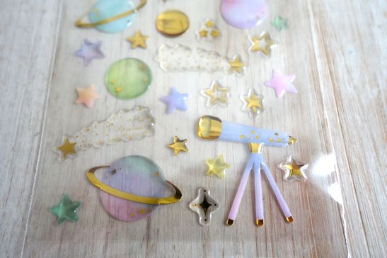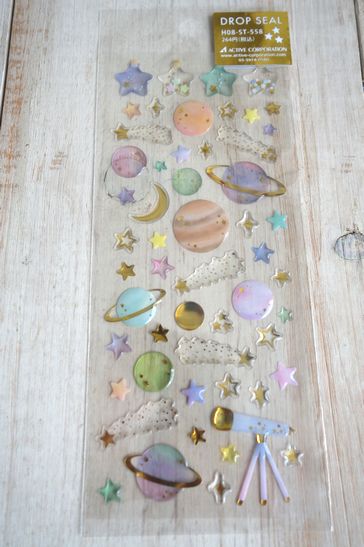 ぷっくりしたドロップタイプの可愛いシールです。ノートや手帳、コラージュやシール帳などにも。コーティングされたようなデザインがとっても可愛いです。大きさは台紙が横7cm、縦16.5cm位です。