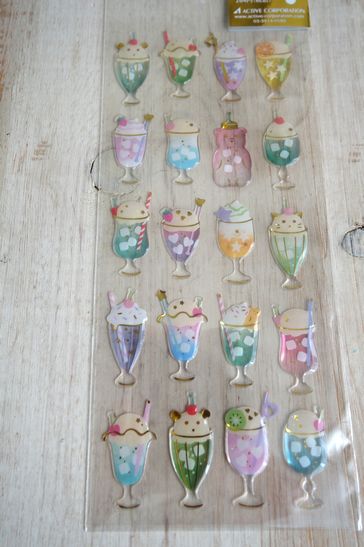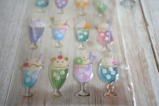 ぷっくりしたドロップタイプの可愛いシールです。ノートや手帳、コラージュやシール帳などにも。コーティングされたようなデザインがとっても可愛いです。大きさは台紙が横7cm、縦16.5cm位です。