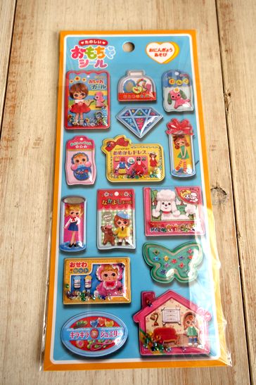 レトロなおもちゃがぷっくりしたカプセルに入ったようなシールです。ノートや手帳、携帯、シール帳などにも。中にビーズなども入っていてカシャカシャ、キラキラしたデザインがとっても可愛いです。大きさは横9cm、縦17.5cm位です。