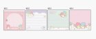 サンリオ柄が可愛いスクエアメモです。4柄が各20枚合計80枚のメモです。大きさは横9.5cm、縦9.5cm、厚み1cm位です。