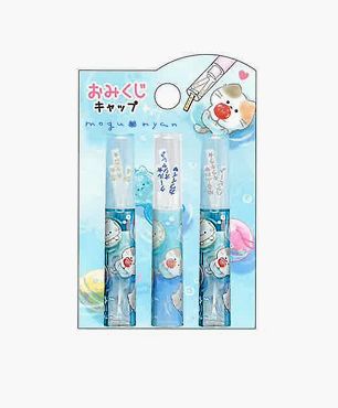 小さなおみくじ付きの鉛筆キャップです。ファンシーな猫のイラストが可愛いです。3個セットになっています。大きさは1個が横1cm、縦6cm位です。