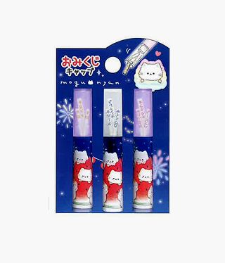 小さなおみくじ付きの鉛筆キャップです。ファンシーな猫のイラストが可愛いです。3個セットになっています。大きさは1個が横1cm、縦6cm位です。