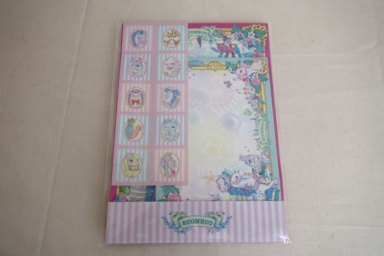 メルヘンな柄が可愛いECONECOさんのレターセットです。便箋8枚、封筒4枚、シール10種類のセットです。素敵なイラストが送った方にも喜ばれそうです。大きさは便箋が縦19cm、横13.5cm位です。