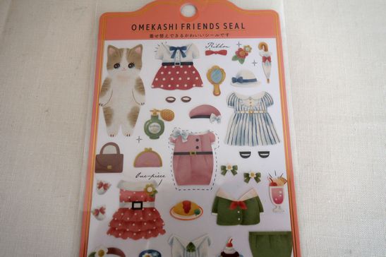 着せ替えのようなデザインが可愛いシールです。ノートや手帳、コラージュ、ラッピング、シール帳などに。大きさは台紙が横9.5cm、縦20cm位です。