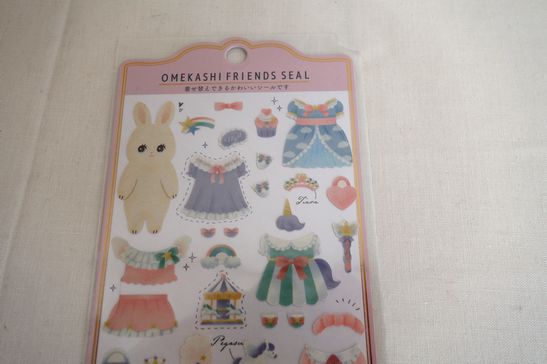着せ替えのようなデザインが可愛いシールです。ノートや手帳、コラージュ、ラッピング、シール帳などに。大きさは台紙が横9.5cm、縦20cm位です。
