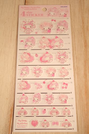 サンリオキャラクターがデザインされたステッカーです。キュートな絵柄が素敵です。アルバムやコラージュ、手帳やシール帳に。サイズが4タイプついています。大きさは台紙が横9cm、縦18cm位です。