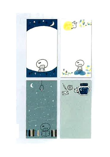 mizutamaさんのほっこりイラストで描かれたデザインのスリムタイプのメモです。メッセージカードやメモ替わりにも可愛く使えます。4種類が各25枚綴りです。大きさは縦11cm、横5.8cm位です。