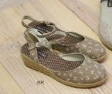 ナチュラルなウェッジソールのサンダルです。淡いブラウンに小花が可愛いです。かかとの部分はラタンになってます。フリーサイズでベルトで調整出来ます。大