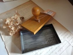 木製のシンプルなスタンプです。昔のヨーロッパで使われていたようなクラッシックな雰囲気のデザインが素敵です。ハンドメイドやラッピングに使ったりスタンプをプレゼントにしても♪ティン素材のトレー付きです。大きさは8.5cm×6cm位です。