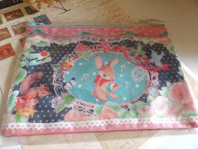 キュートな柄のファスナー付きぺったんこポーチです。マチなしタイプで通帳やカードの整理、文具、メイク道具にもぴったりです。プリント柄がとっても素敵です。大きさは横20cm、縦15cm位です。