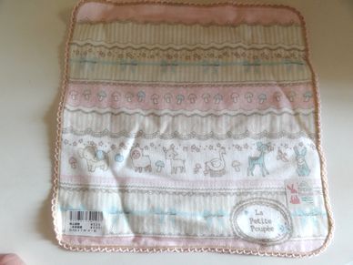 可愛いガーゼのハンドタオルです。キュートなデザインが素敵です。吸水性も抜群でとても柔らかいです。ガーゼ素材です。綿100%になっています。大きさは横が25cm、縦が25cm位です。