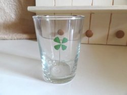 素朴なデザインが可愛いグラスです。飾りにしても素敵です。大きさは横6.9cm、縦9.7cm位です。